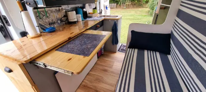 Le van de Michael reprend le concept Bubulle, avec un aménagement sur mesure pensé pour la location dans la région de Marseille.