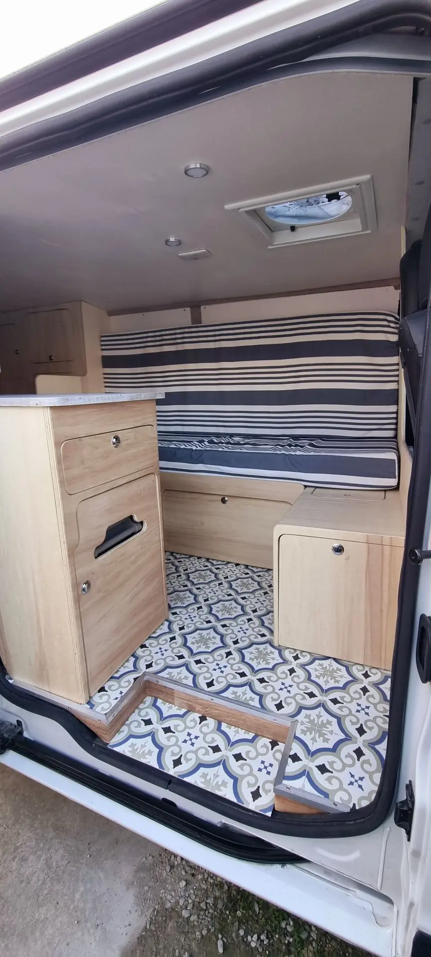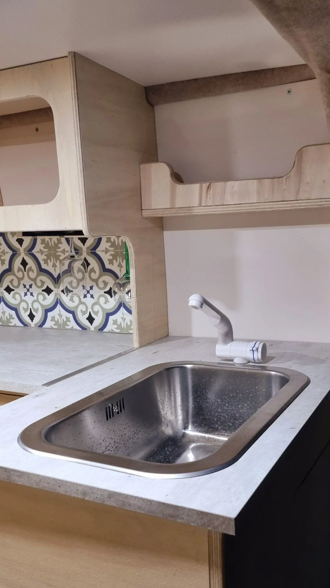 Réservoir d'eau propre de 30L avec pompe immergée sous le van.